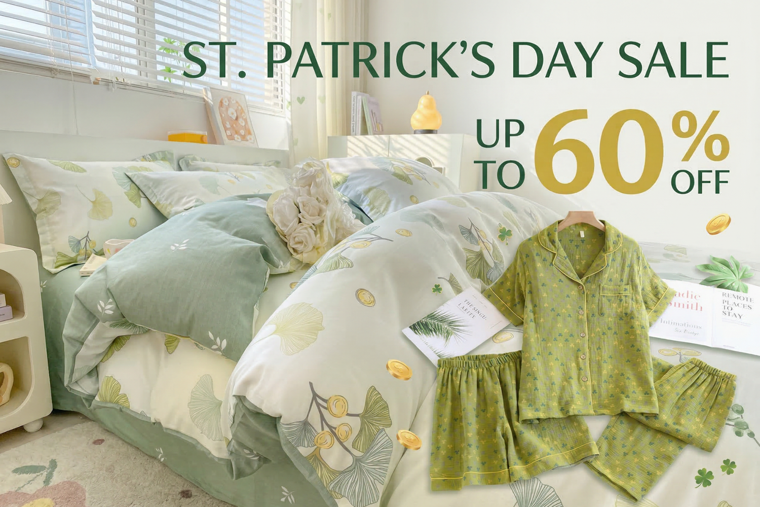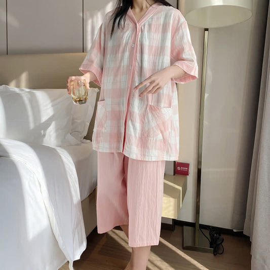 Large Ginkgo Leaf Cotton Kimono Pajamas