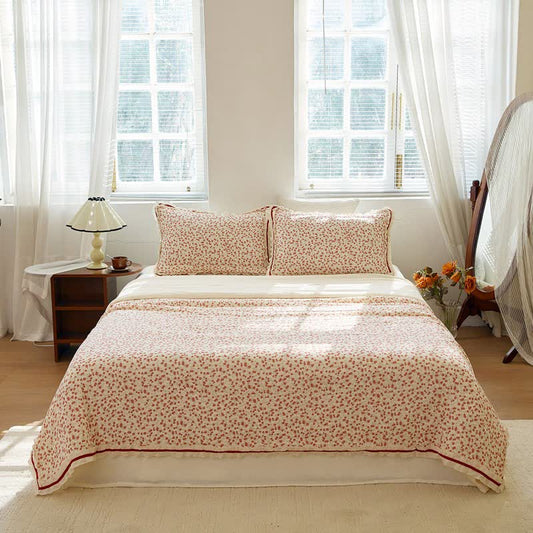 Red Floral Ruffled Cotton Gauze Quilt