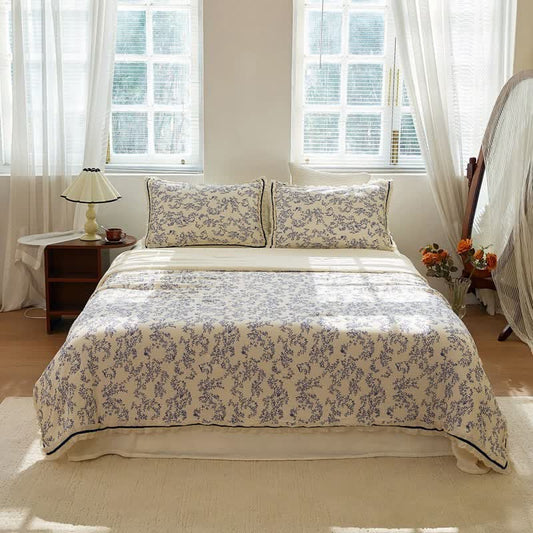 Blue Leaf Ruffled Cotton Gauze Quilt
