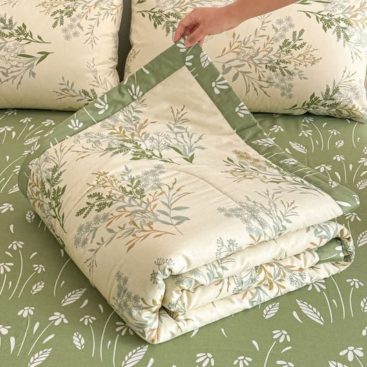 Botanical Leaf Print Pure Cotton Quilt