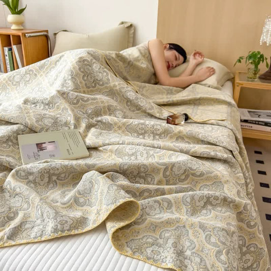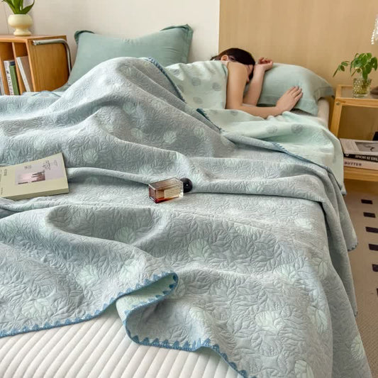 Ginkgo Leaf Jacquard Cotton Reversible Quilt