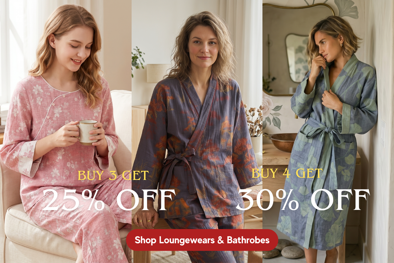 Pure Cotton Breathable Retro Kimono Bathrobe