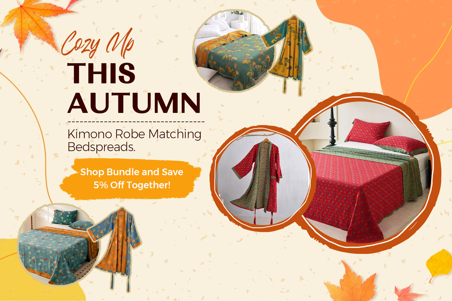 Large Ginkgo Leaf Cotton Kimono Robe