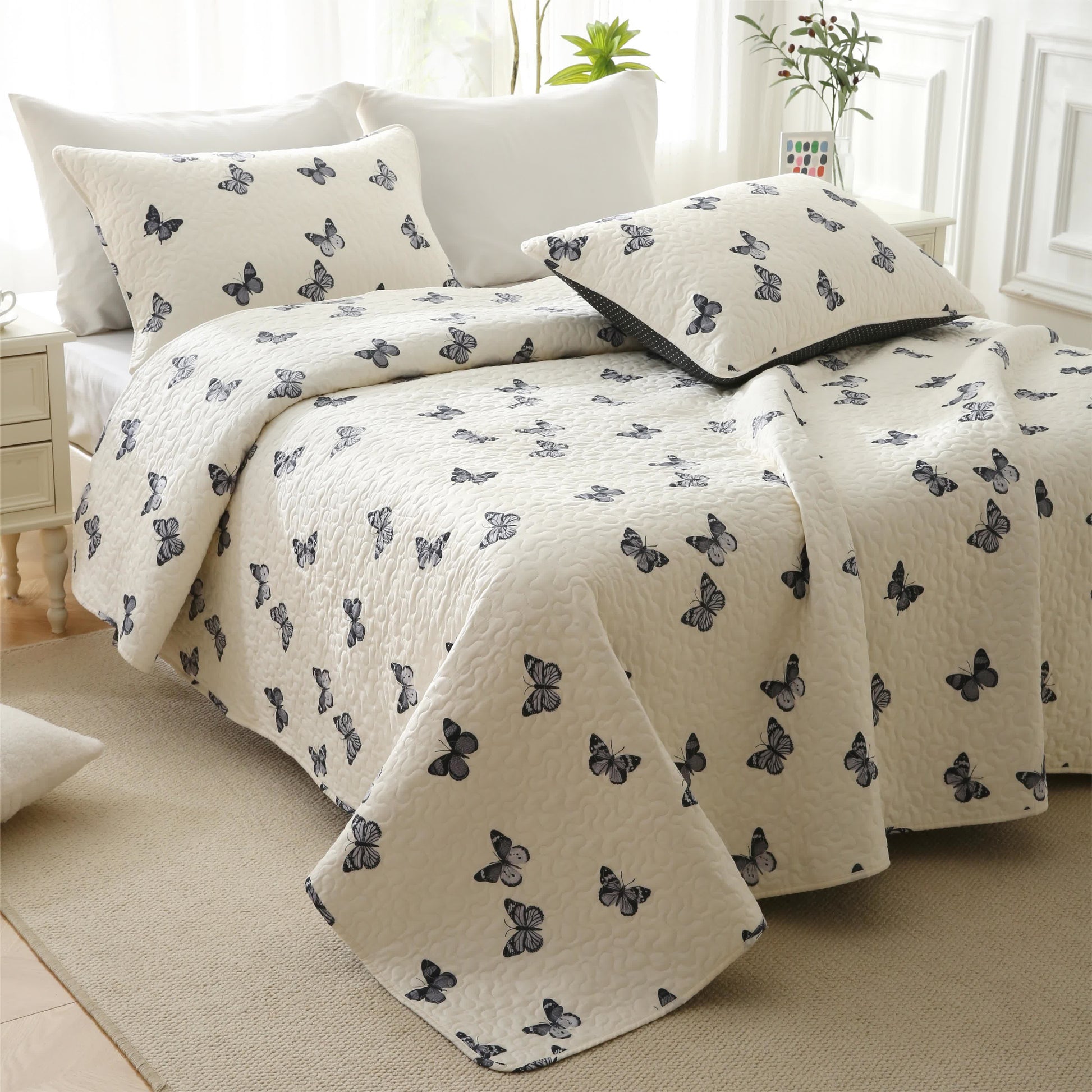 The velvety-smooth pure cotton fabric offers a luxurious tactile experience while remaining delightfully airy for excellent breathability. With charming butterfly prints that flutter gracefully across the surface, these quilts add a whimsical yet sophisticated touch to your sleeping space.