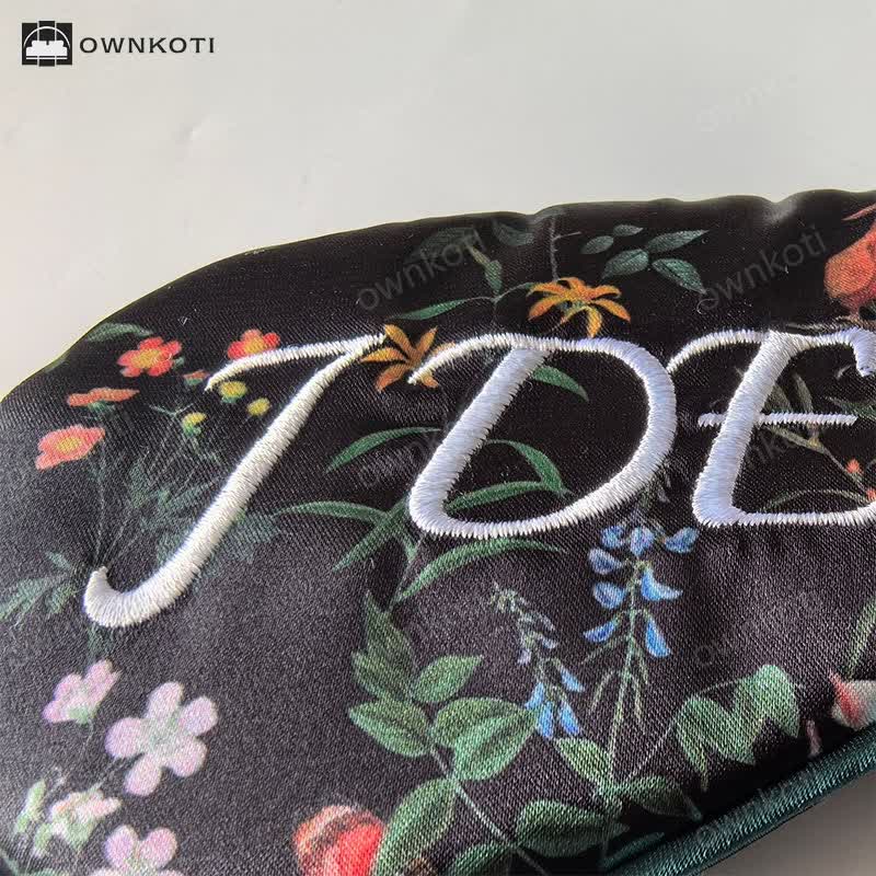 Floral Print Simulated Silk Blackout Sleep Eye Mask