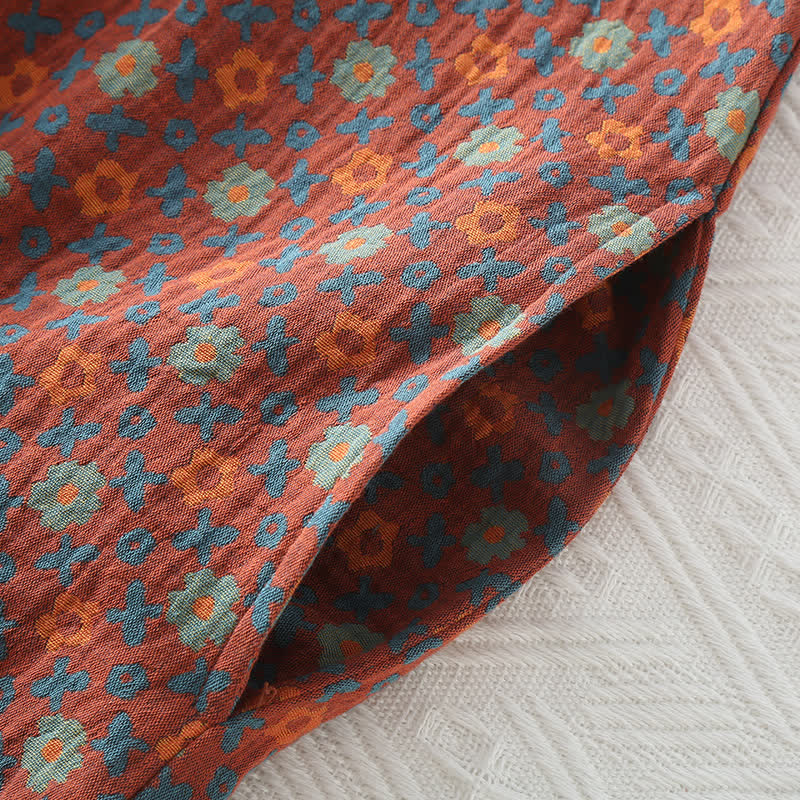 This nightgown with floral print is full of vintage style. Three colors can give you a different look. Made of pure cotton with double layers of gauze, it is durable, soft, and lightweight. Reactive printing and dyeing design make it not easy to fade. The side slits and angled pleat design make it more unique and can modify your figure. It's suitable for summer, Spring and Autumn.