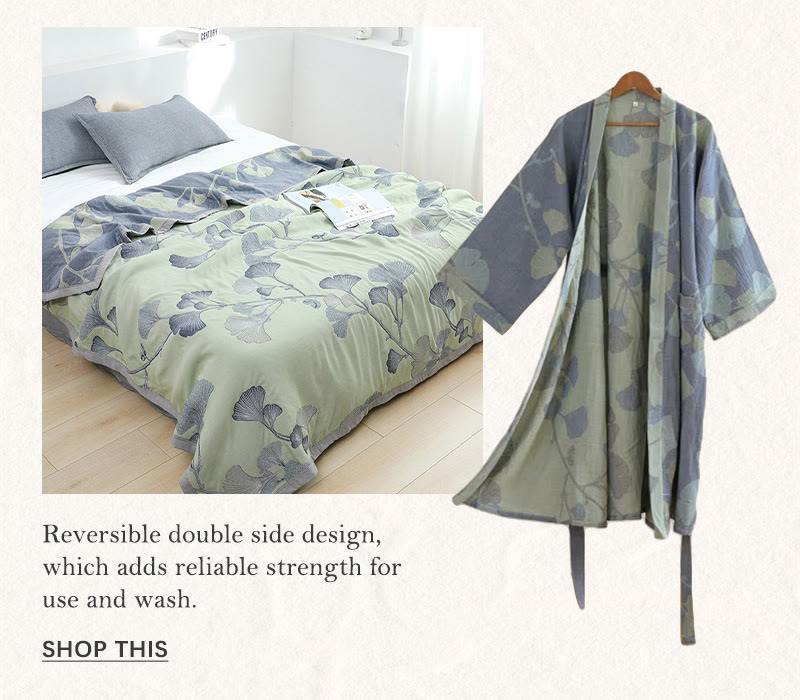 Ginkgo Leaf Cotton Gauze Reversible Quilt