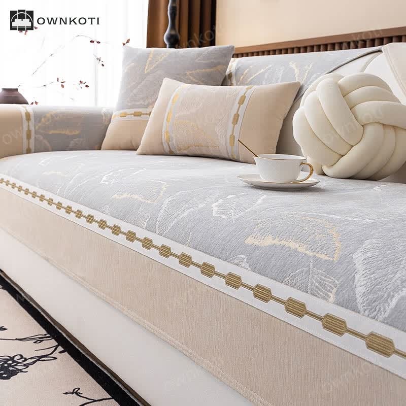 Luxury Chenille Botanical Pattern Sofa Cover