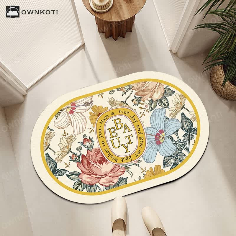 Luxury Floral Plant Diatom Mud Anti-slip Bath Mat