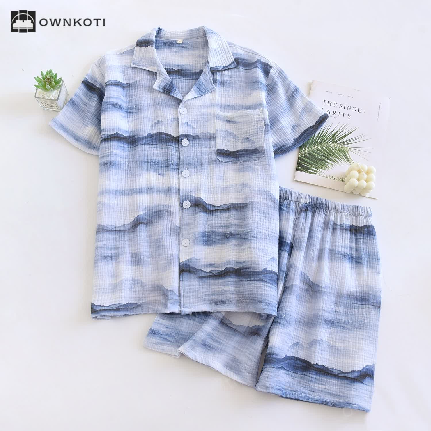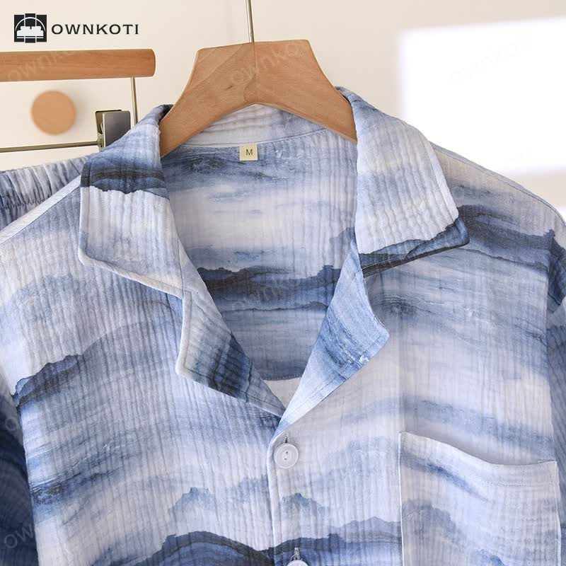 Neutral Glacier Print Cotton Gauze Pajama Set