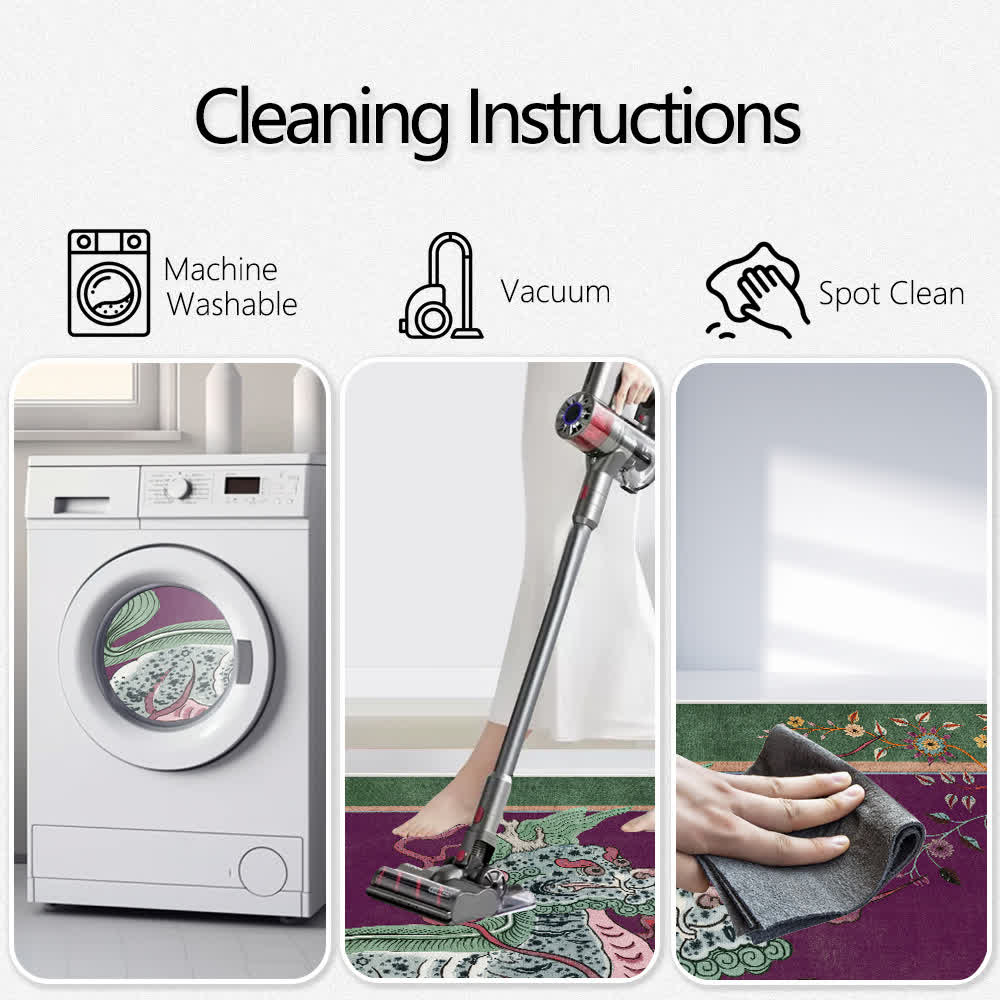 This rug is made from plush, skin-friendly materials for a cozy feel underfoot. Spills and stains are no worry! Simply toss it in the washing machine for hassle-free cleaning. The intricate Kirin motif and vintage-inspired colors complement both modern and classic interiors.
