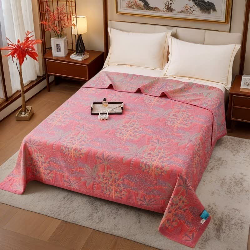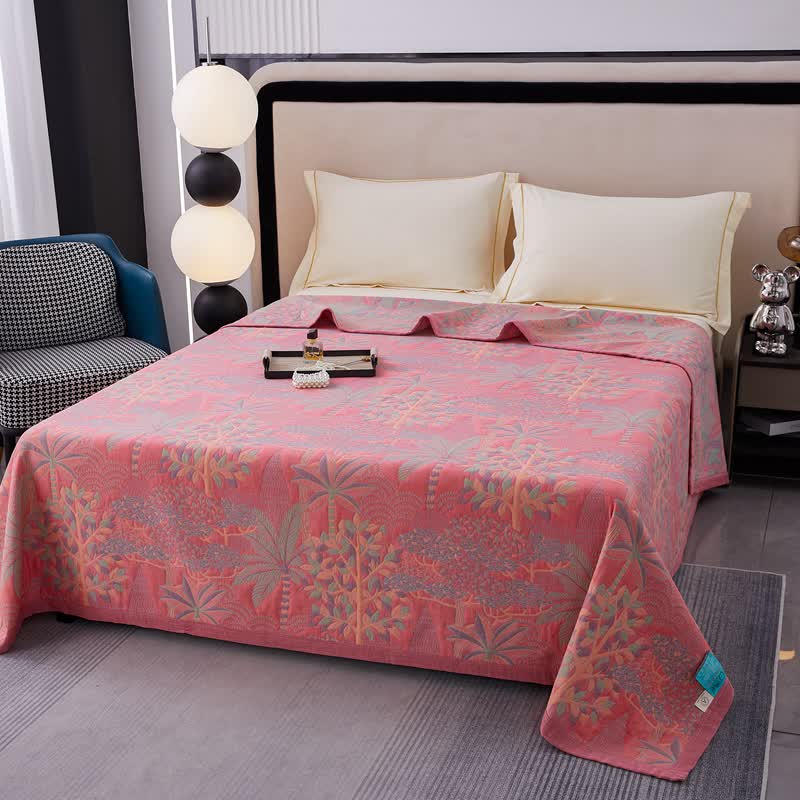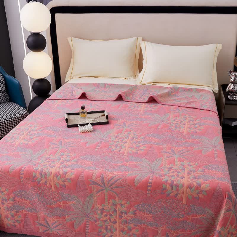 Pink Tropical Style Cotton Yarn-dyed Quilt
