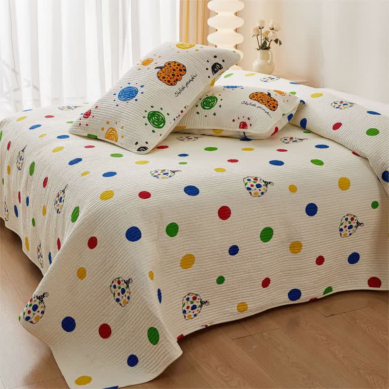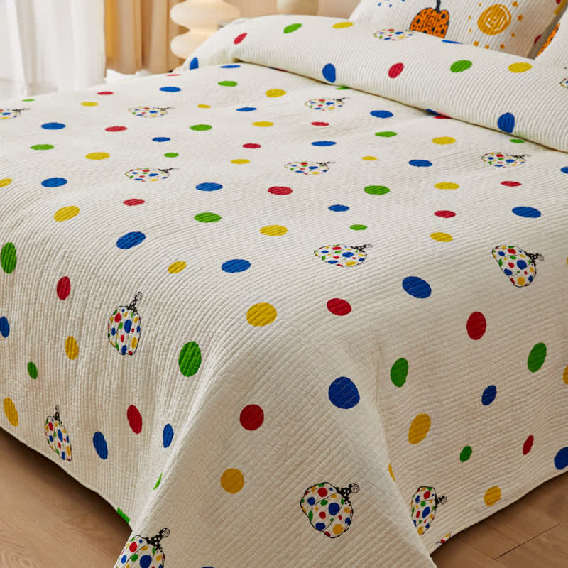Quilted Polka Dot Pumpkin Cotton Bedding