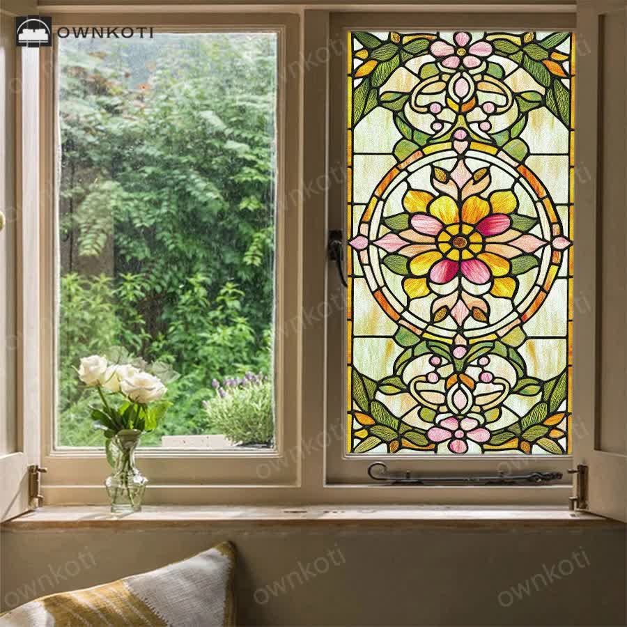 - Perfect for windows, glass doors, or shower enclosures, this film creates a beautiful stained-glass effect that filters light while preventing unwanted views.