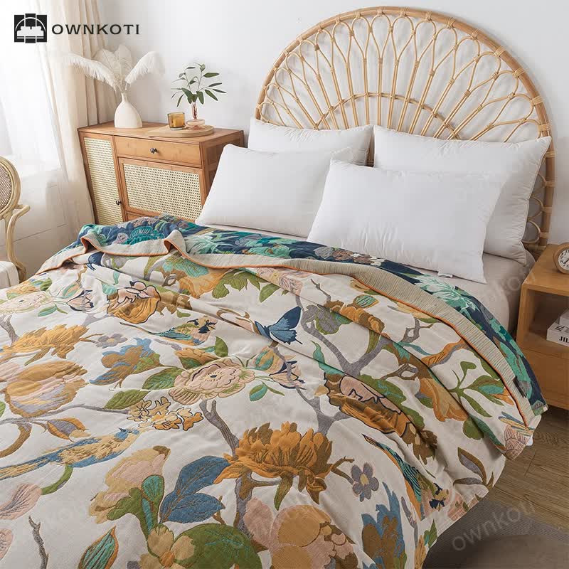 Enjoy two beautiful looks in one blanket! Made from 100% cotton gauze, it provides a soft, breathable feel ideal for year-round use. Its lightweight design ensures comfort without sacrificing warmth, making it perfect as a bedspread, couch throw, or cozy blanket for picnics and outdoor gatherings.