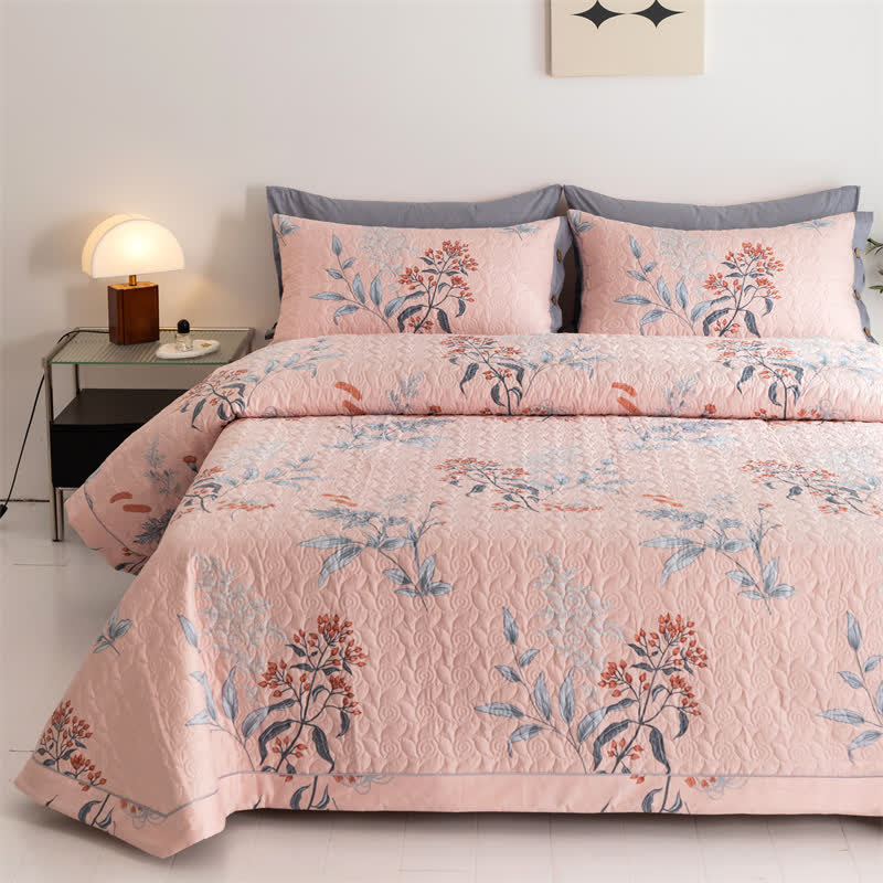 Rustic Floral Leaf Cotton Quilt