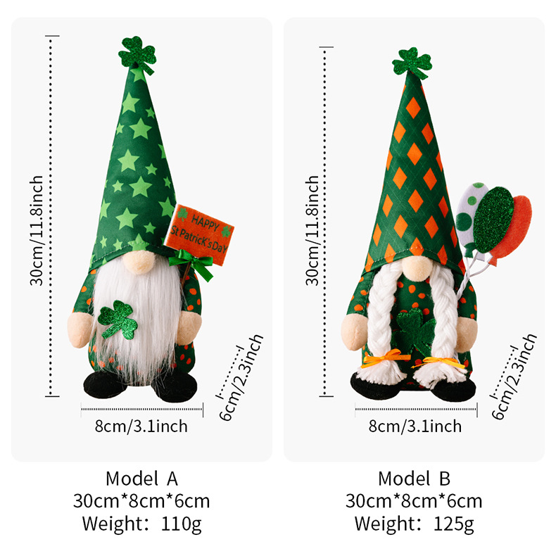 - Symbol of Luck: Both gnomes are topped with glittering green shamrocks and carry festive accessories like colorful balloons and clover motifs, embodying the "Luck of the Irish."