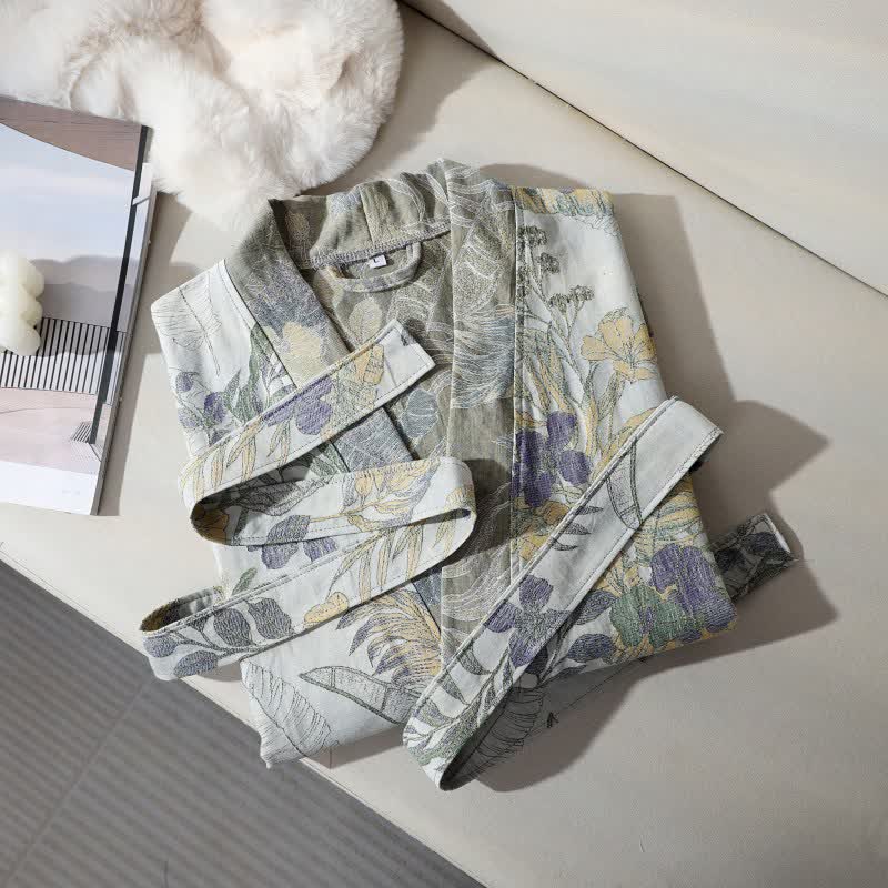 - Material: Made from pure cotton single-layer gauze with jacquard weaving, this robe is lightweight, breathable, and soft against the skin, making it ideal for year-round comfort.