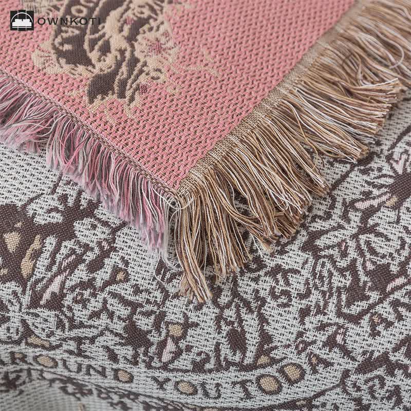 The decorative tassels provide a stylish finish, making it a perfect accent for your sofa or bed. Ideal for draping over your couch, snuggling during chilly evenings, or adding an extra layer to your bed, this blanket is crafted from four layers of high-quality gauze, offering comfort and durability for lasting warmth and coziness.