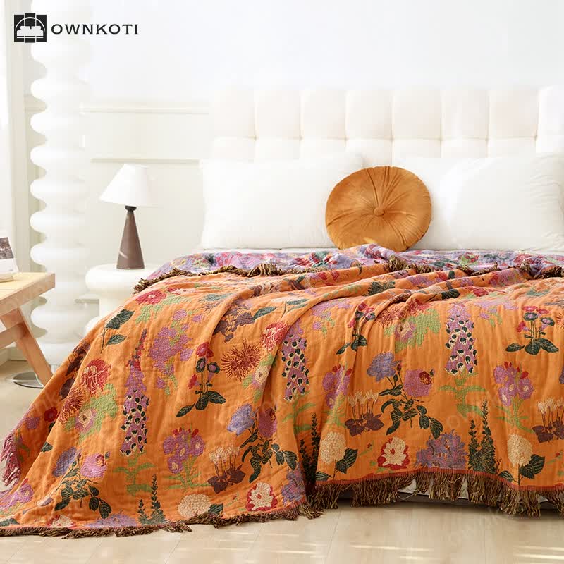 Vintage Floral Tassel Cotton Gauze Sofa Blanket